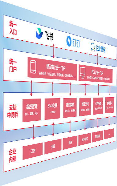 对协作平台提供支持服务,,支持企业应用与协作平台对接,,包含组织同步、、、消息集成、、、待办集成等。。支持目前主流的协作平台:钉钉、、、企微和飞书。。